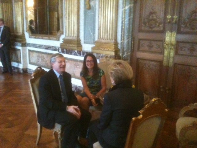 This morning I accompanied EESC President Staffan Nilsson and Vice-President Anna Maria Darmanin to the Belgian Royal Palace for the King’s annual New Year’s reception for the Presidents, Vice-Presidents and high-ranking officials in the EU institutions or those working with them. Once everybody has been presented individually to the King and Queen the guests assemble for an aperitif while the King and the Queen talk more privately with the Presidents of the main institutions and other selected guests. I am therefore proud to show you, in the photograph, our Vice-President, Anna Maria Darmanin, together with the new Maltese Commissioner, Tonio Borg, talking with Queen Paola. More generally, as I have written in previous posts on the topic, the royal reception is an excellent occasion to catch up on contacts and to ‘network’.